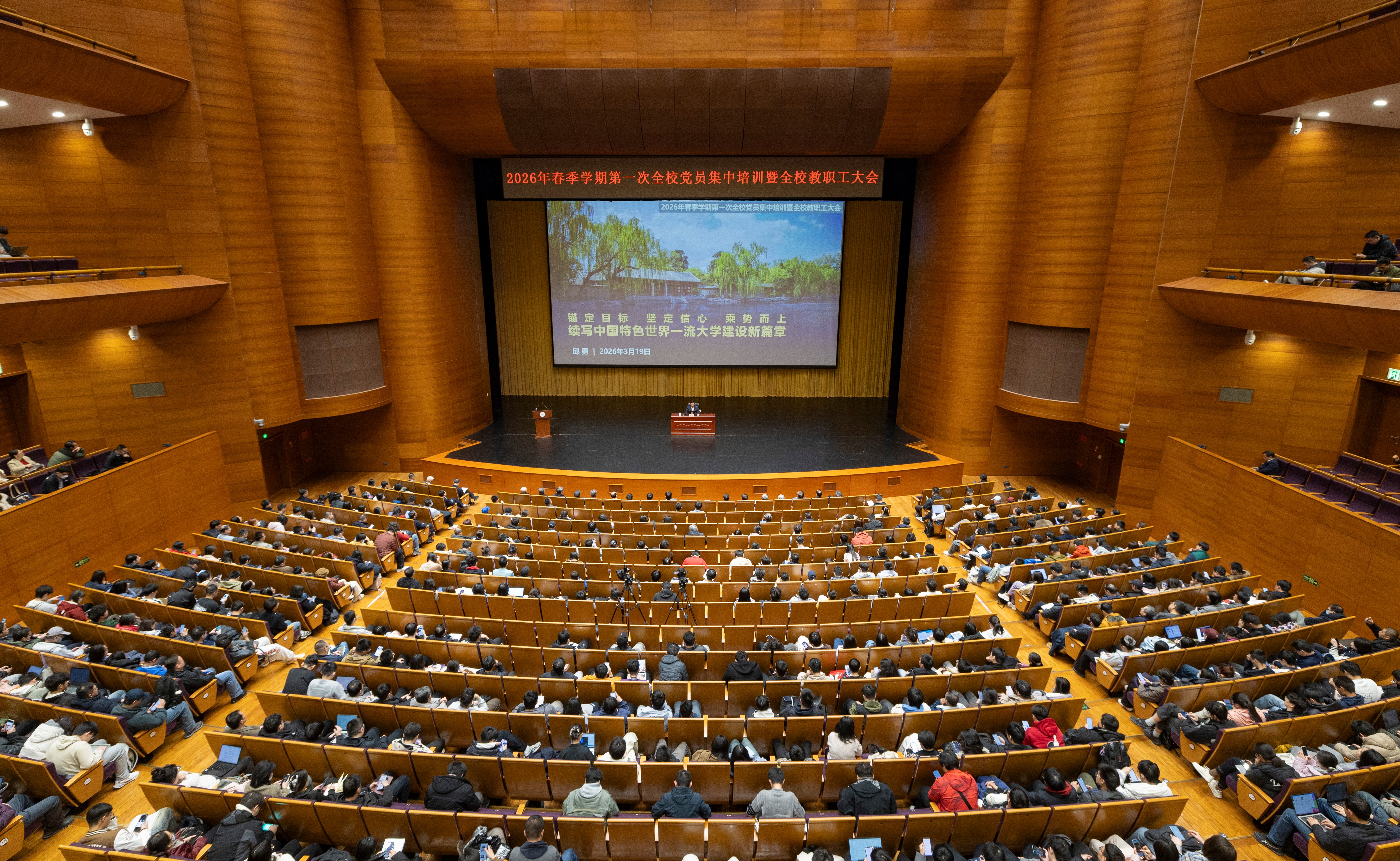 3月19日下午,清華大學舉行2026年春季學期第一次全校黨員集中培訓暨全校教職工大會,傳達學習習近平總書記在全國兩會期間的重要講話和全國兩會精神,介紹“十五五”時期學校建設發展的主要目標任務,通報部署新一年度重點工作。校黨委書記邱勇,校黨委副書記、校長李路明出席并作部署,校黨委常務副書記向波濤主持會議。